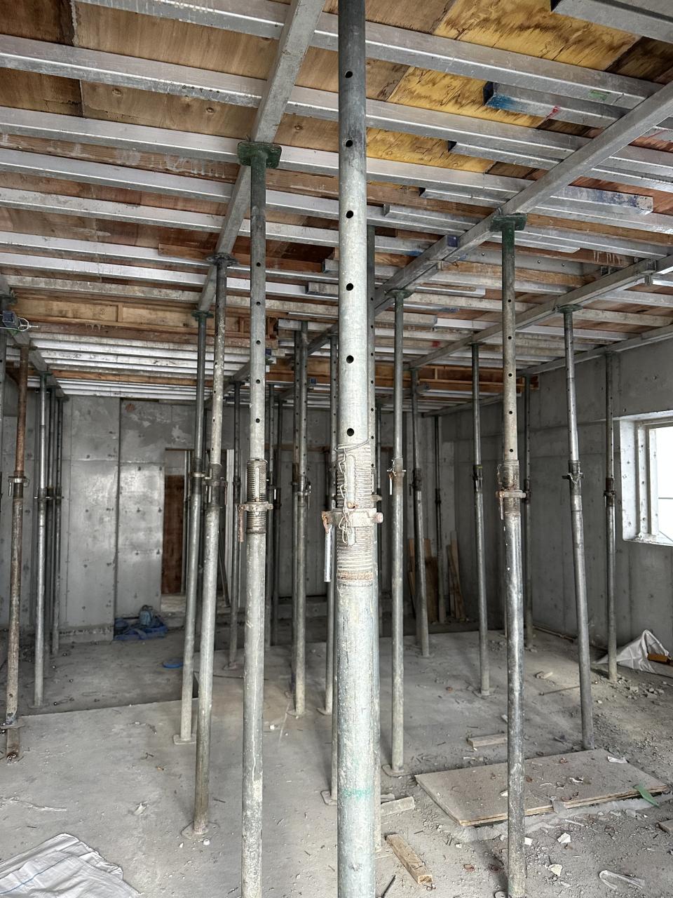 今日は、大阪市東成区にある10F建てマンションの支保工解体作業を行いました。